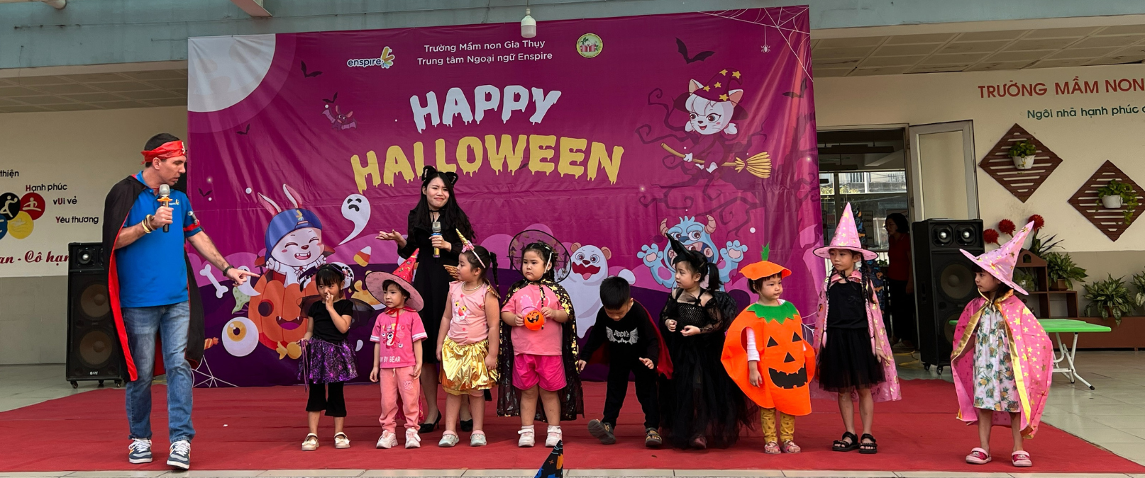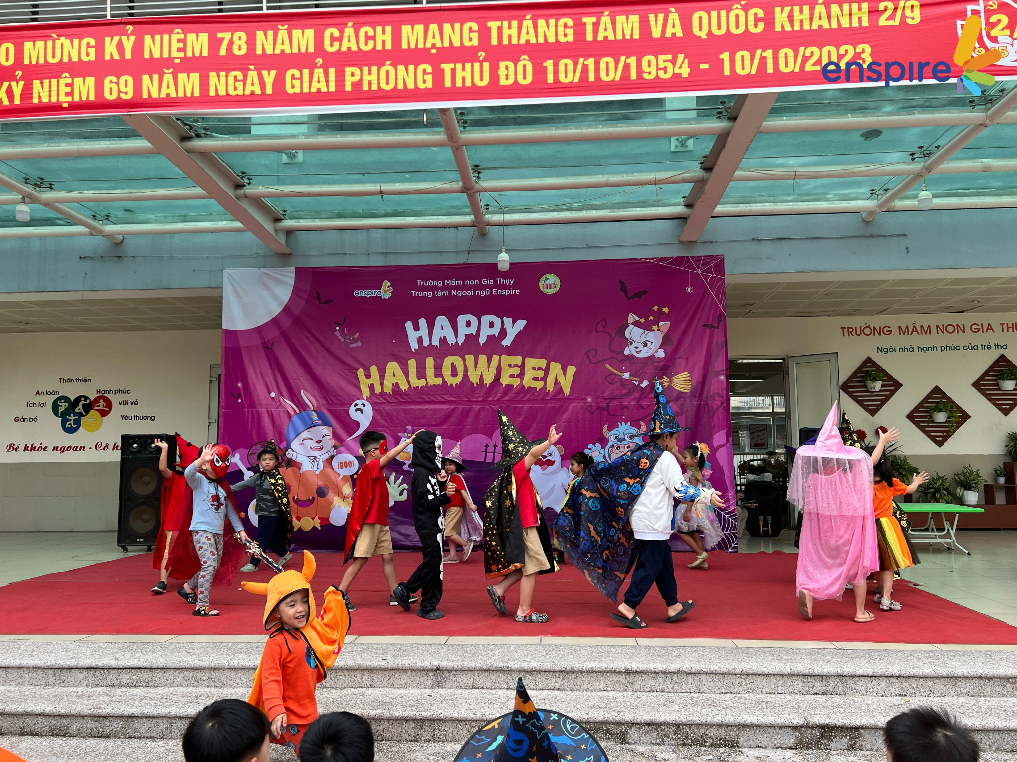 👻 Chiều ngày 30/11, các bạn nhỏ Mầm non Gia Thụy đã được trải nghiệm Lễ hội Halloween cùng Enspire. Mở đầu với phần giao lưu trên sân khấu đầy vui nhộn cùng bài hát “Knock knock trick or treat”, các con như được tiếp thêm ngọn lửa để tham gia trải nghiệm hết mình với Halloween.