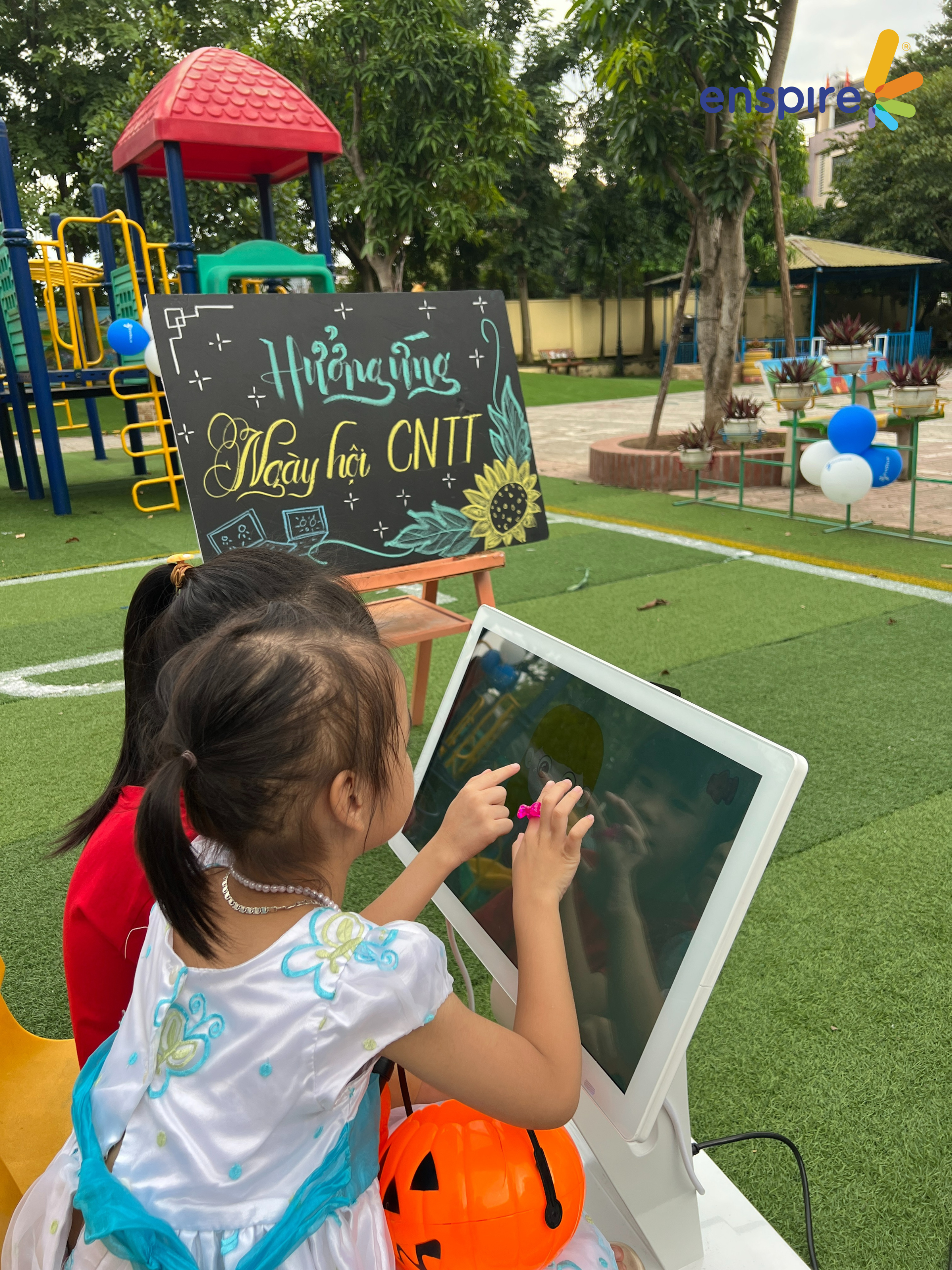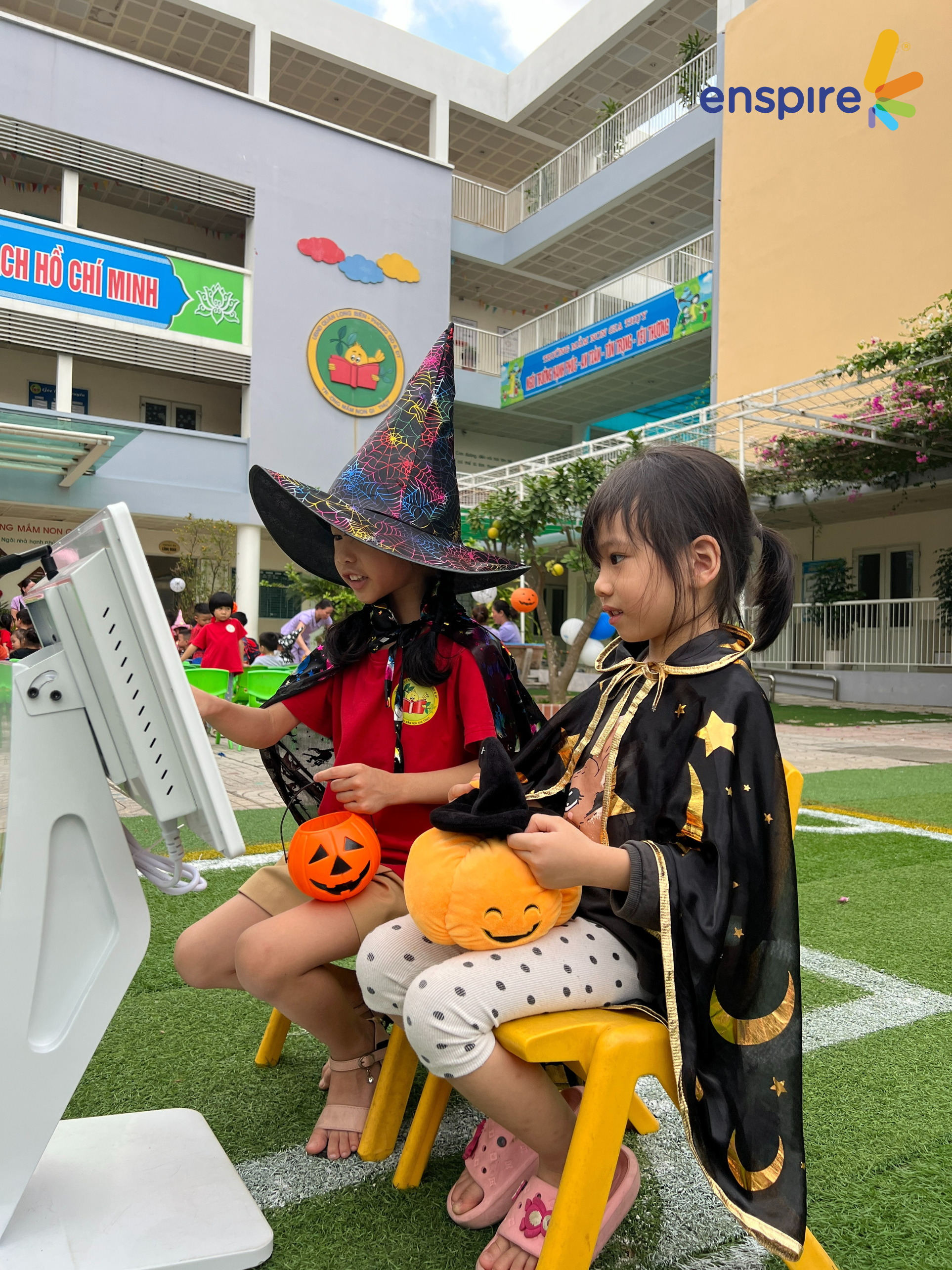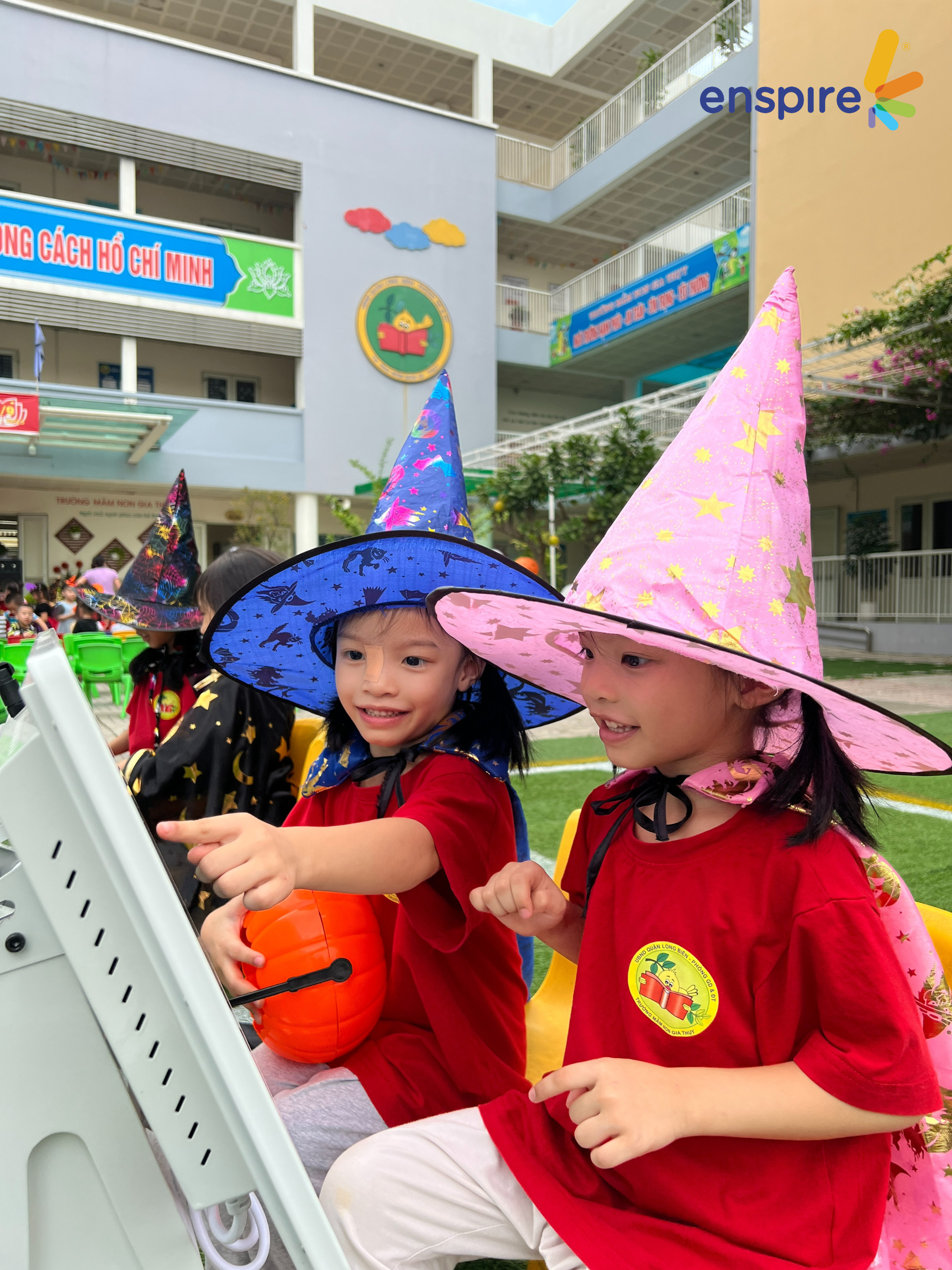 🎃 GÓC TRẢI NGHIỆM CÔNG NGHỆ – các công chúa, hoàng tử của mầm non Gia Thụy tiếp tục được tham gia trải nghiệm ứng dụng Enspire Online. Bạn nhỏ nào cũng vô cùng hào hứng!!
