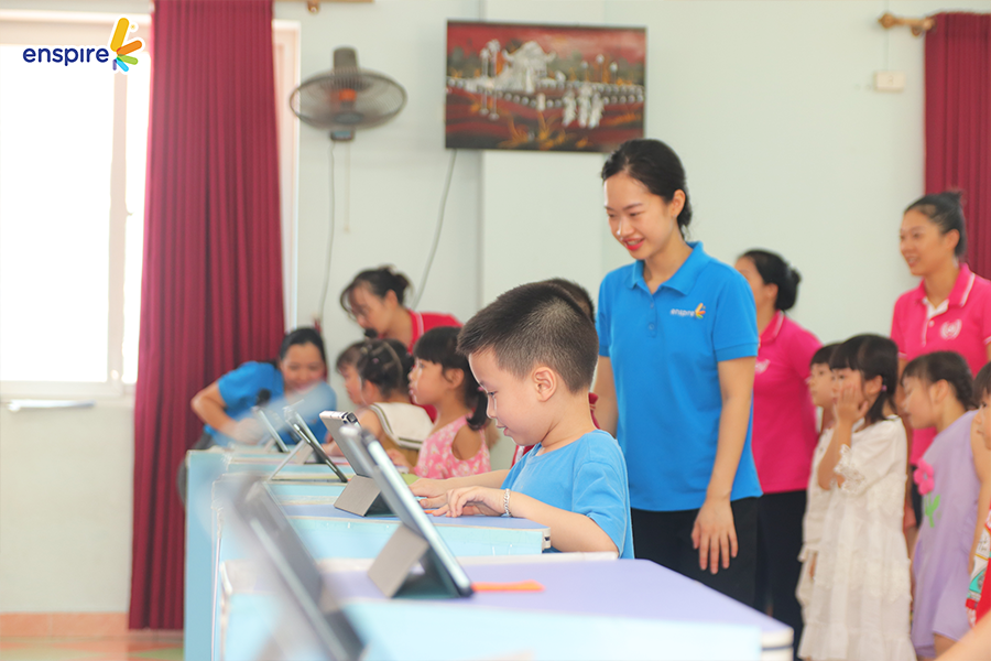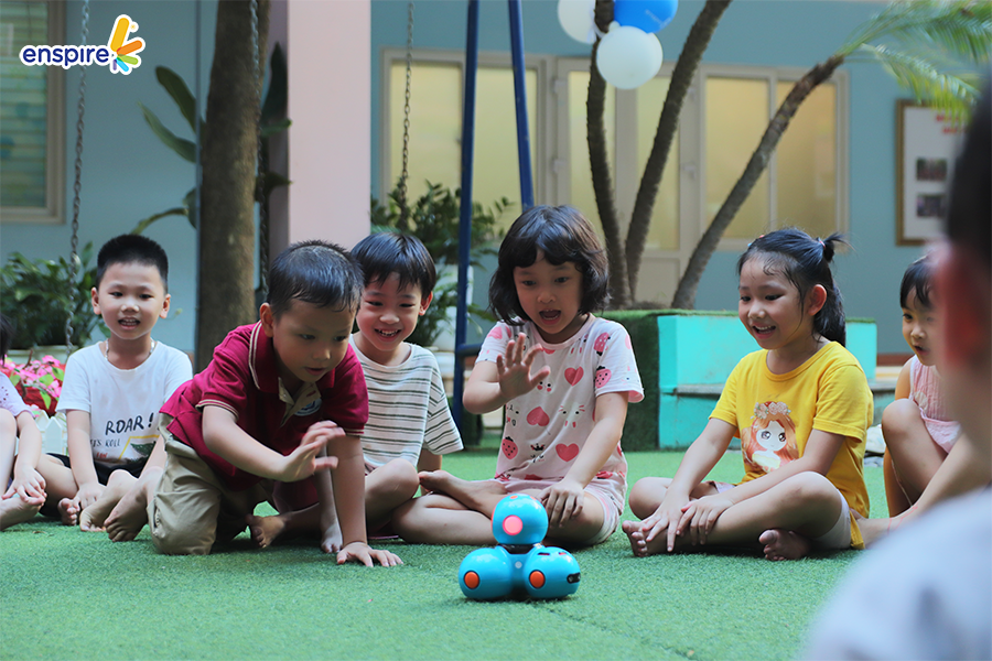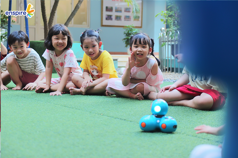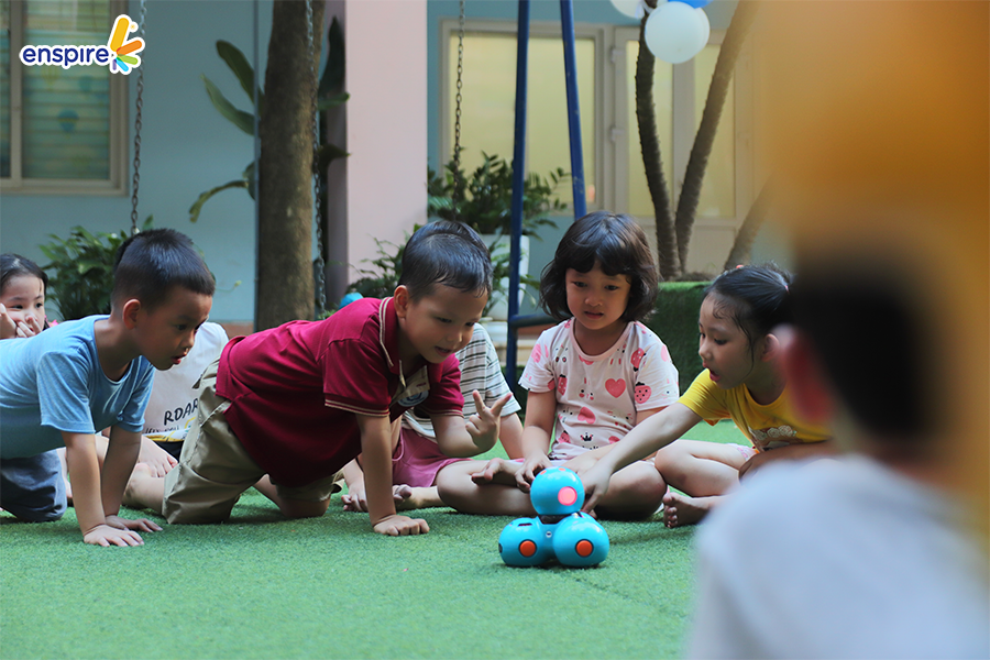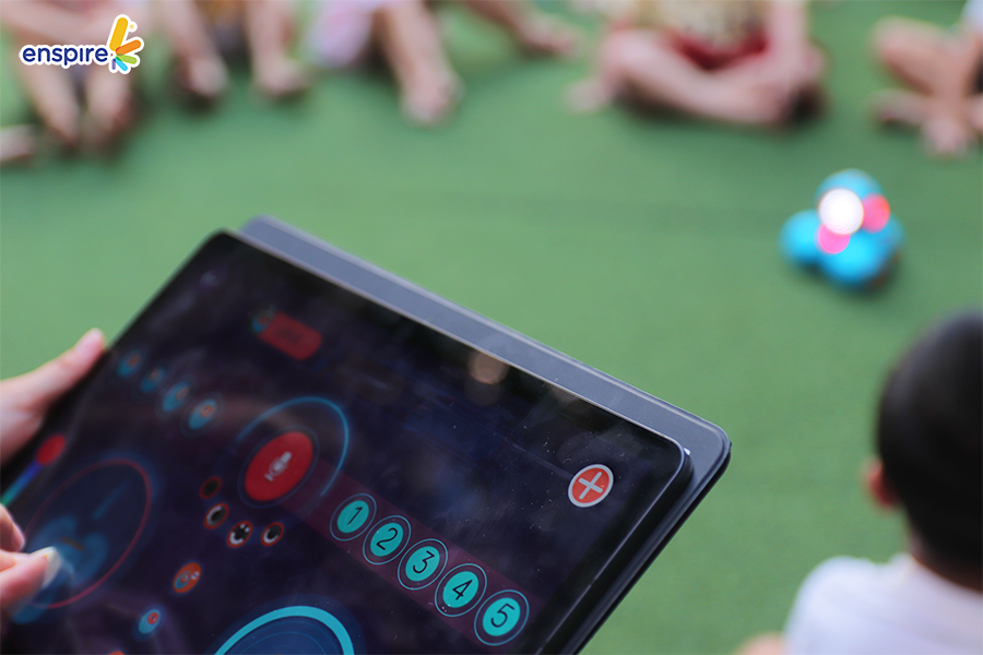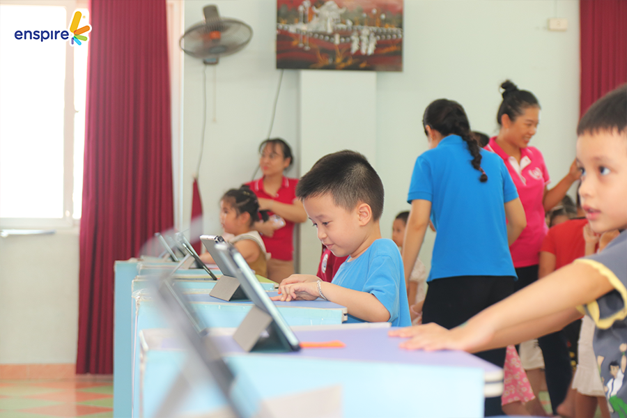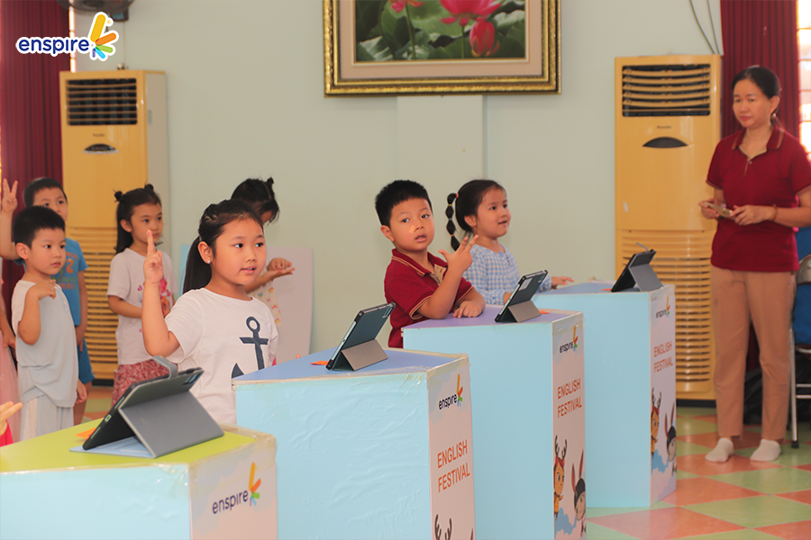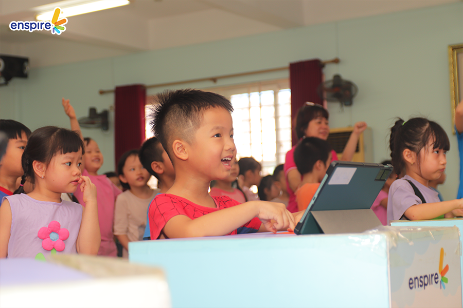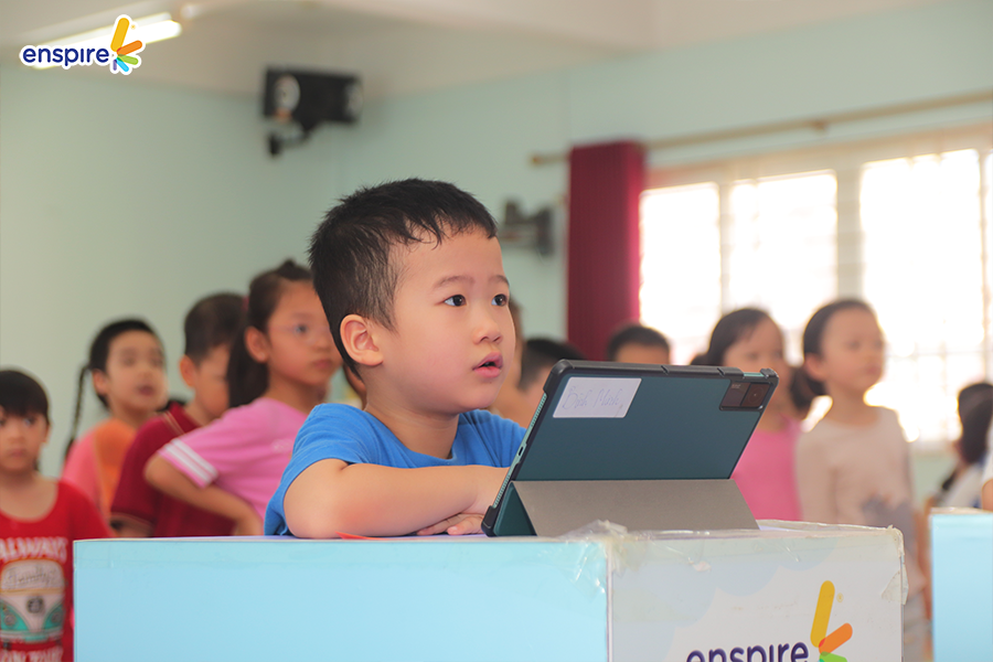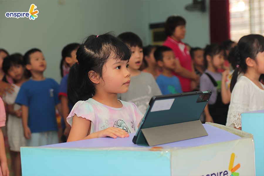 Hoạt động này không chỉ giúp các con làm quen với những sản phẩm công nghệ từ nhà Enspire, qua đó hỗ trợ cho việc học tiếng Anh của trẻ mà còn mang đến những giây phút giải trí, kích thích sự tò mò tìm hiểu trong con.
