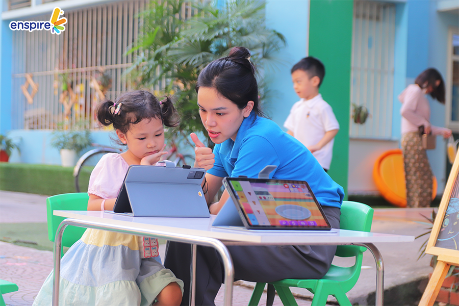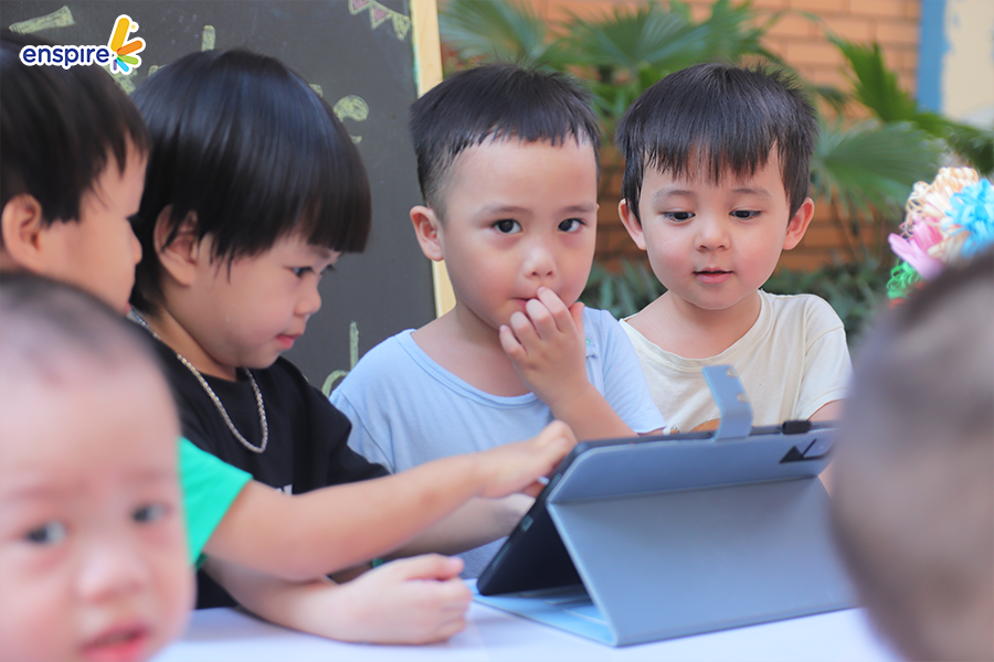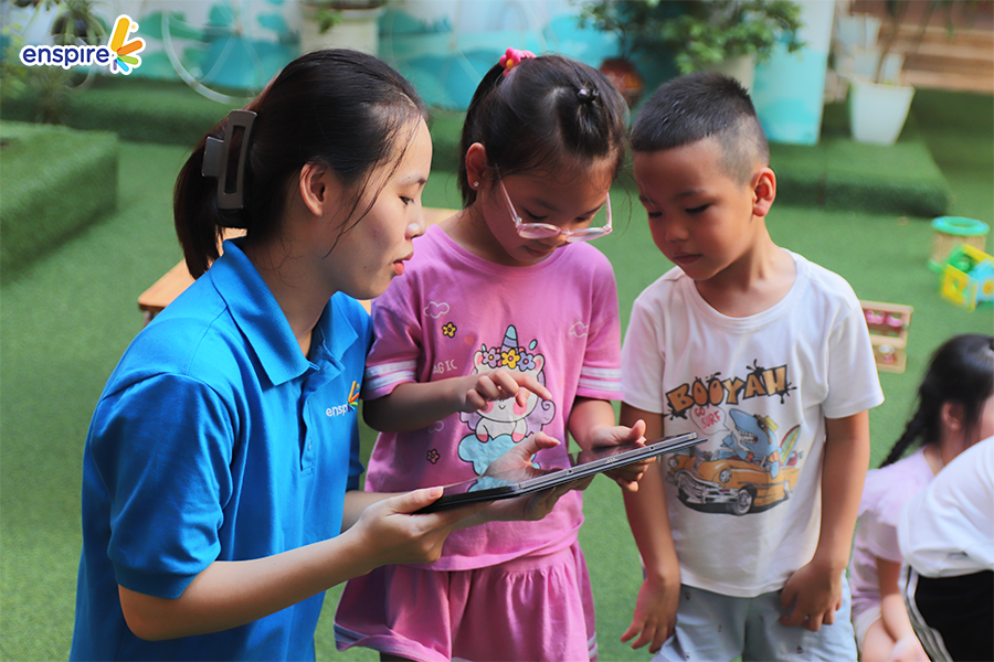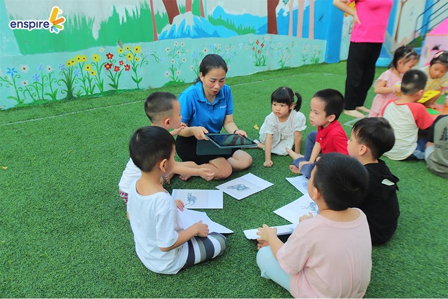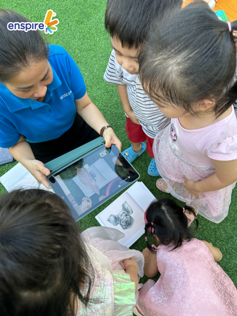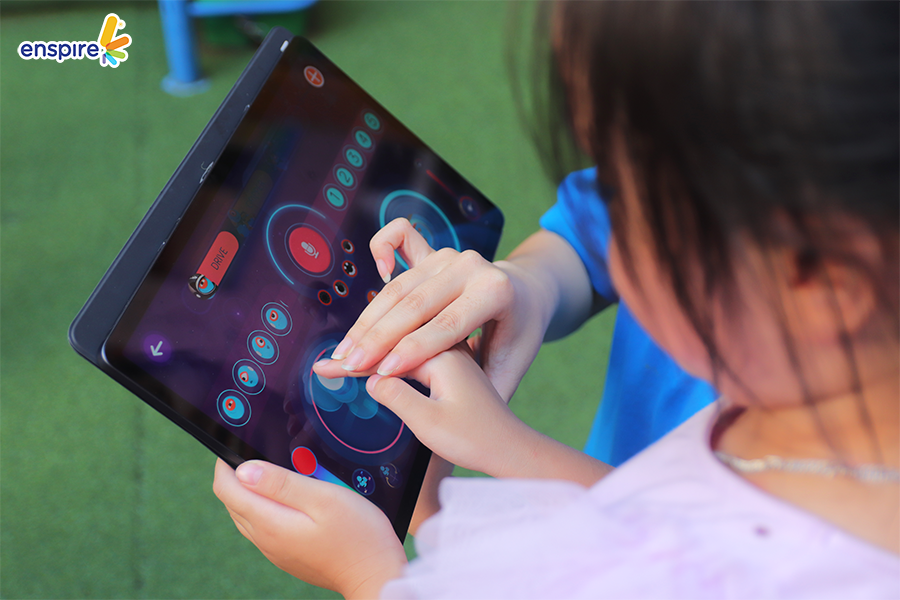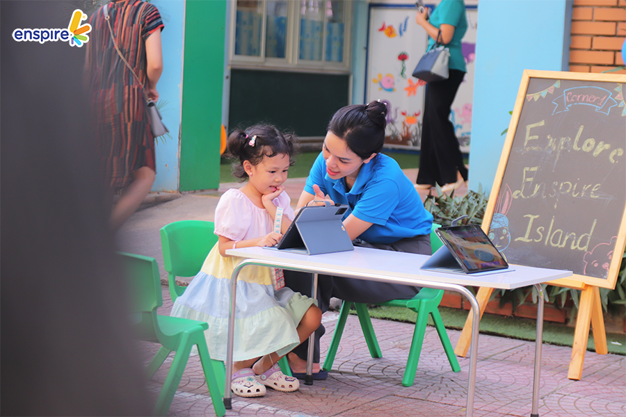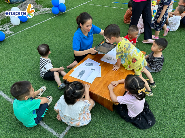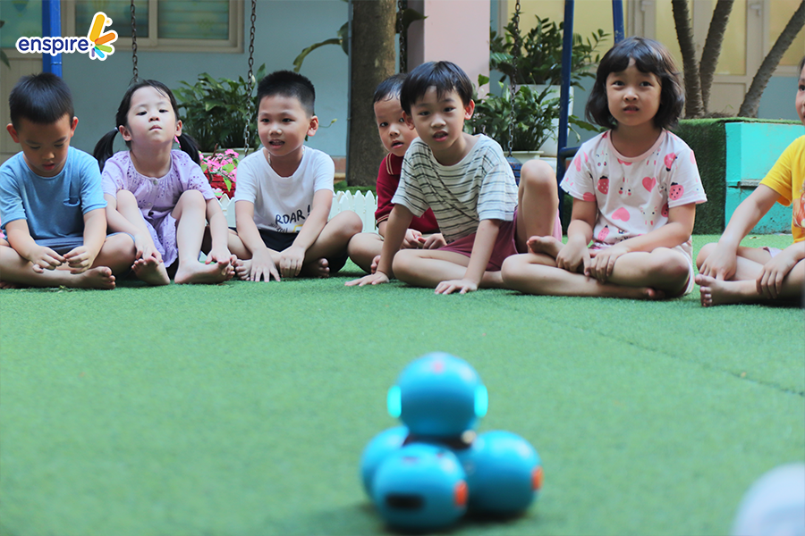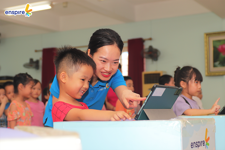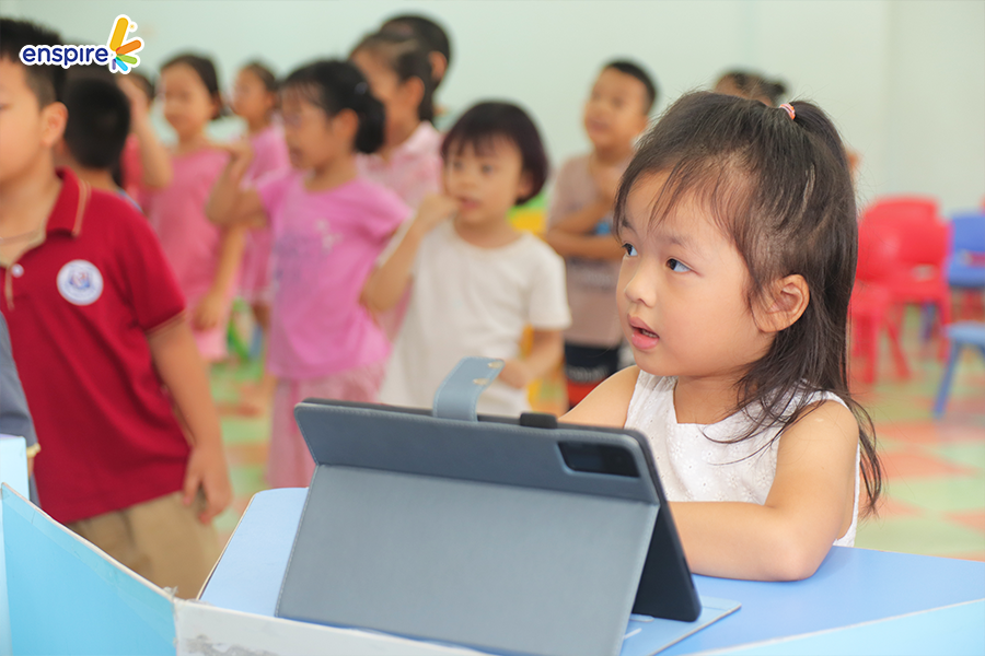 Hoạt động này không chỉ giúp các con làm quen với những sản phẩm công nghệ từ nhà Enspire, qua đó hỗ trợ cho việc học tiếng Anh của trẻ mà còn mang đến những giây phút giải trí, kích thích sự tò mò tìm hiểu trong con.