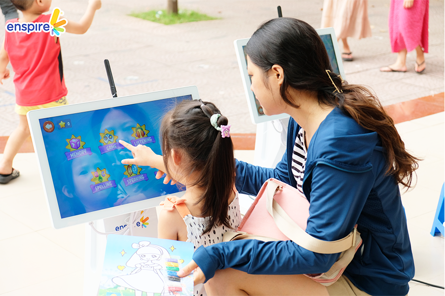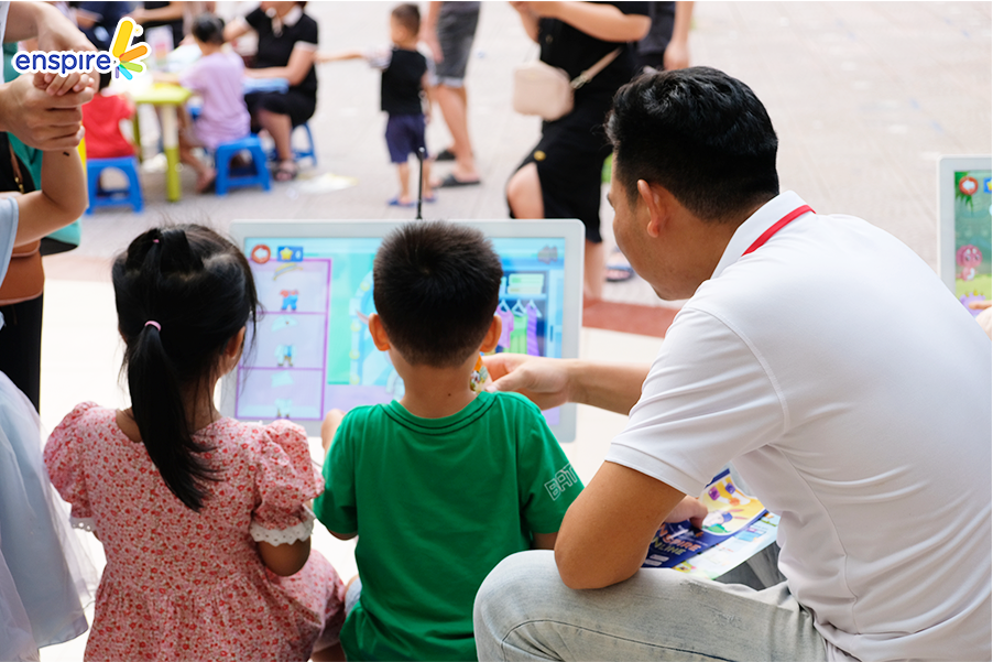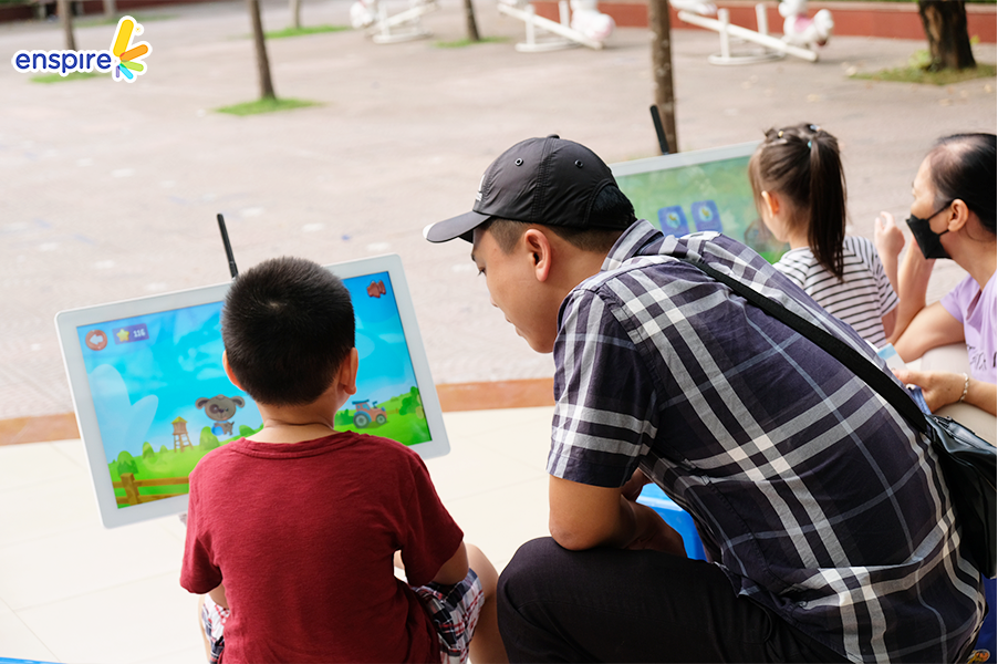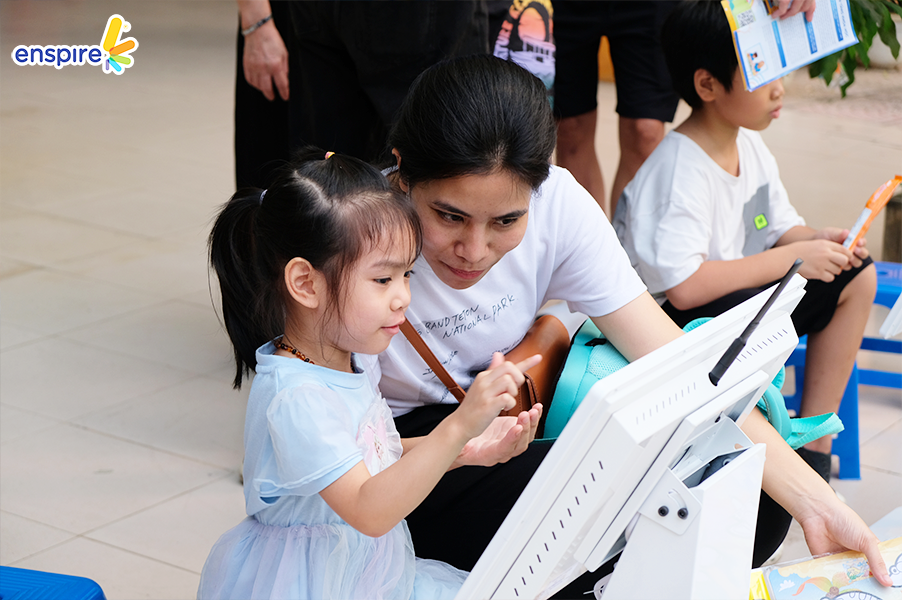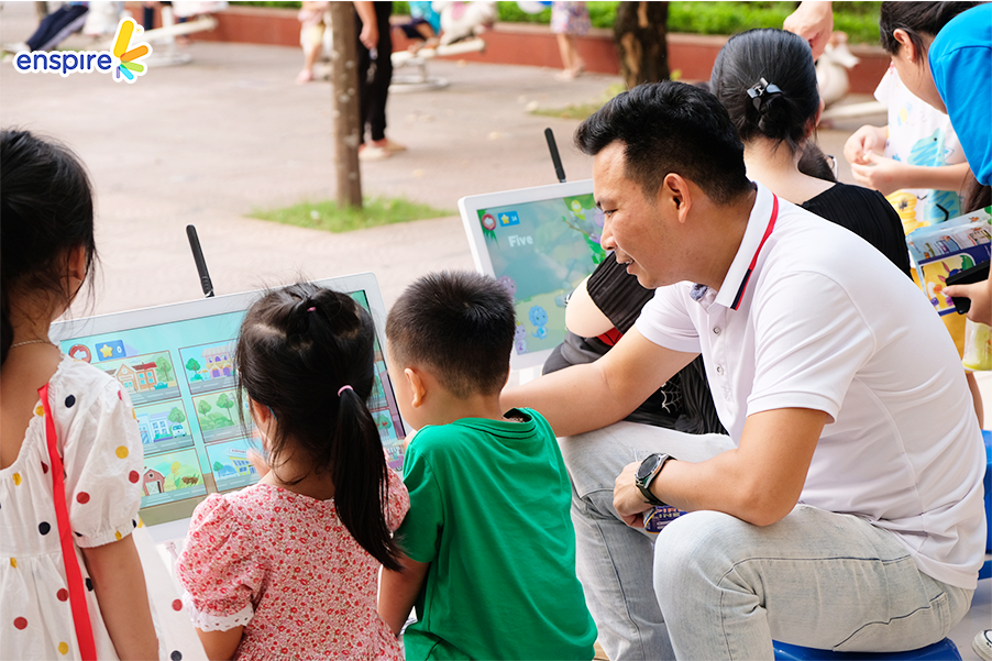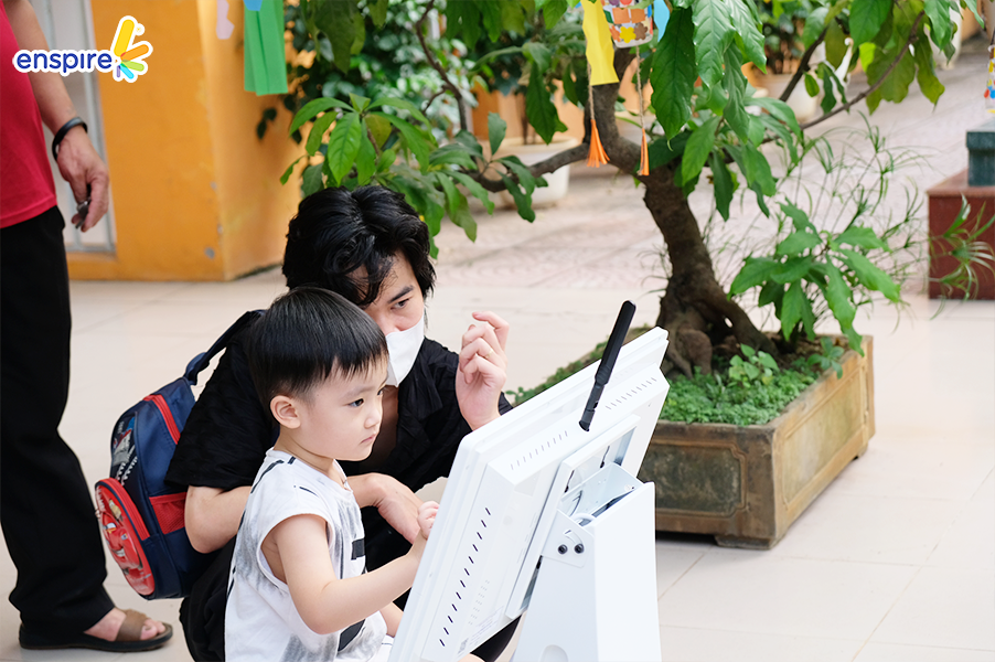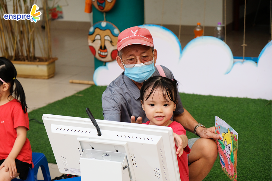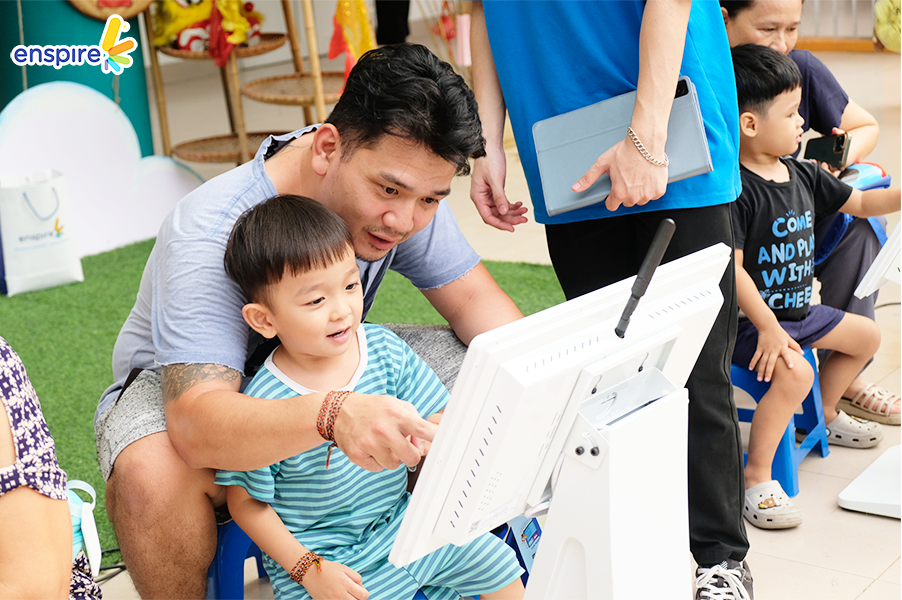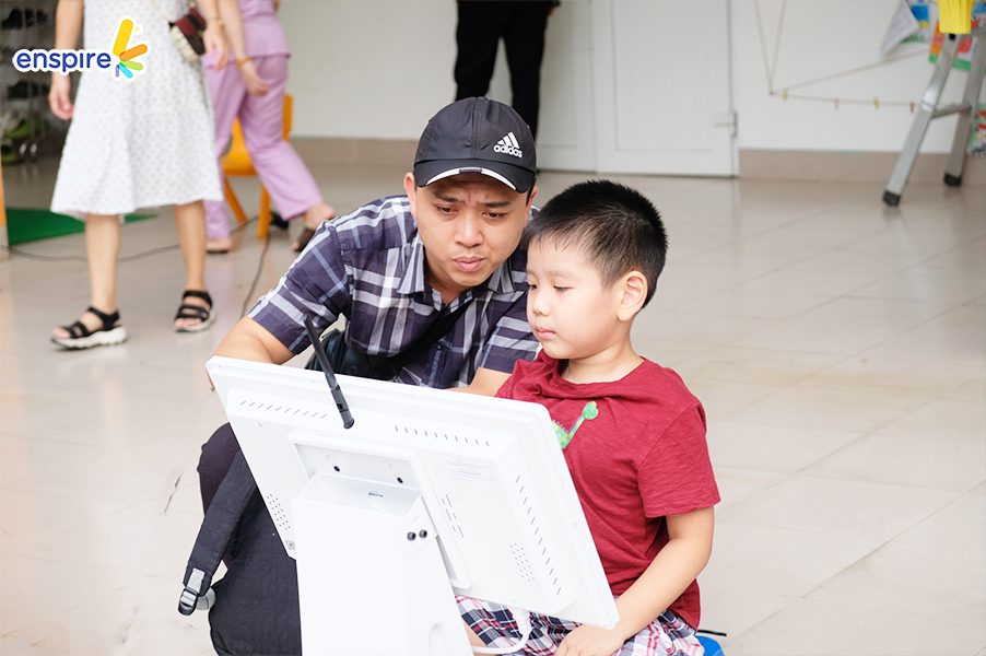 Bên cạnh sự tham gia đầy nhiệt huyết của các bạn nhỏ, thì các vị phụ huynh cũng tỏ ra hào hứng không kém và rất vui vẻ khi xem các bạn nhỏ trải nghiệm ứng dụng Enspire Online để thực hành tiếng Anh. Ngắm nhìn những ánh mắt hạnh phúc và nụ cười tự hào của các phụ huynh khi các con “chinh phục” được những “thử thách” của Enspire Online, Enspire cũng cảm thấy vui lây và thêm phần tự hào. Enspire mong rằng, với ứng dụng Enspire Online, cha mẹ có thể giúp con chủ động làm quen với thiết bị công nghệ số một cách văn minh, và hướng dẫn con “tận dụng” công nghệ, trở thành những công dân số tích cực.