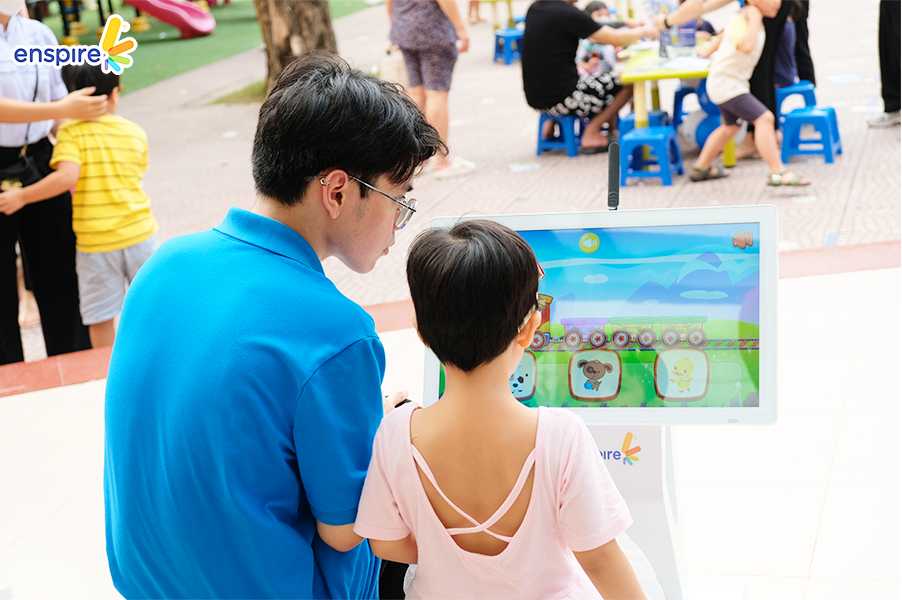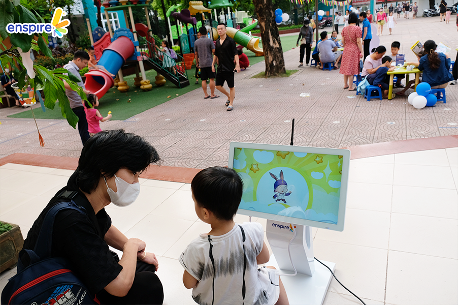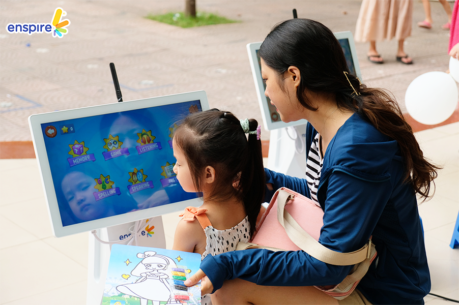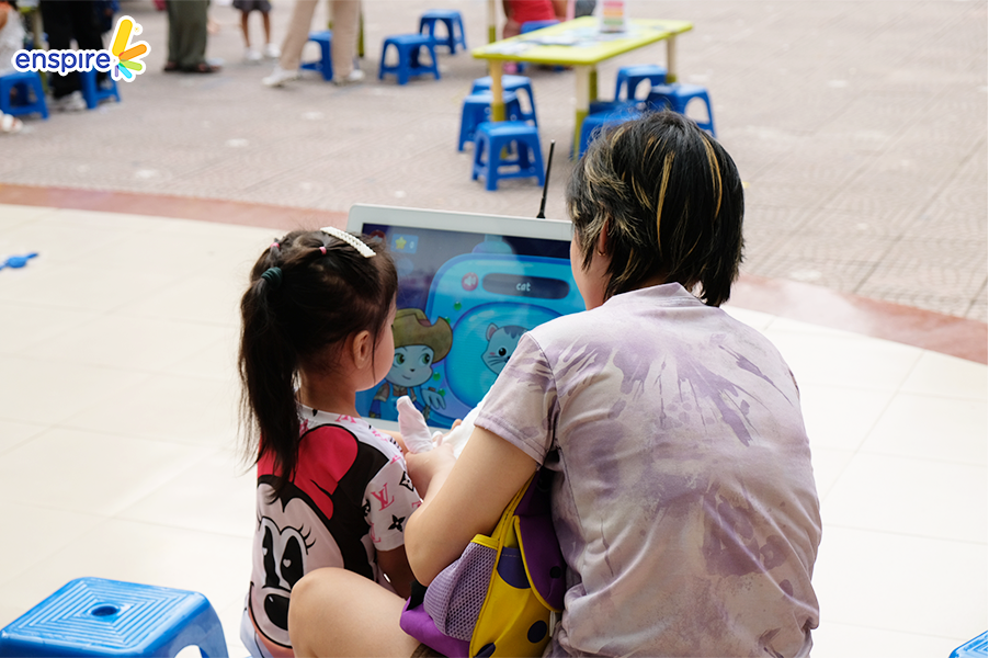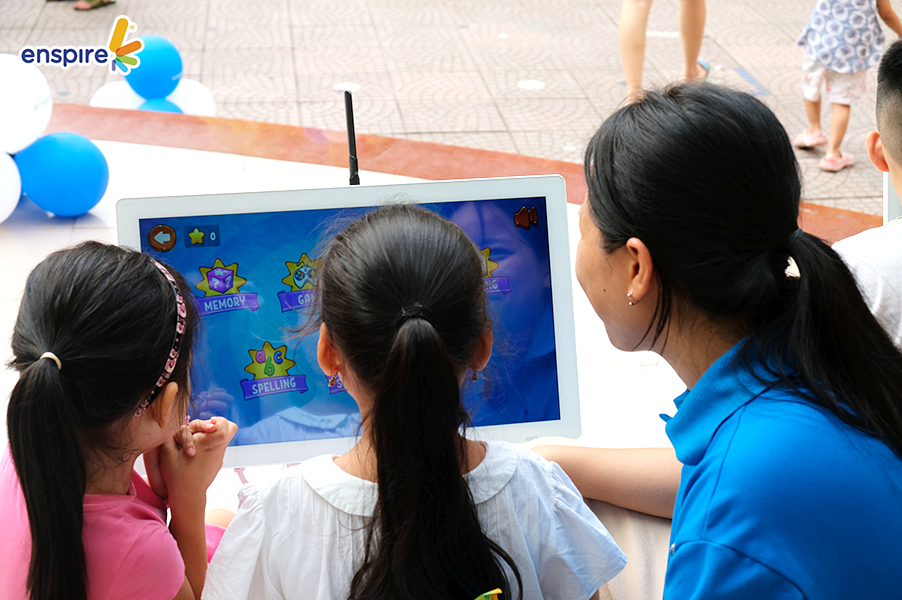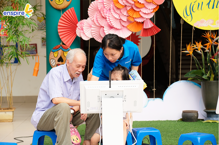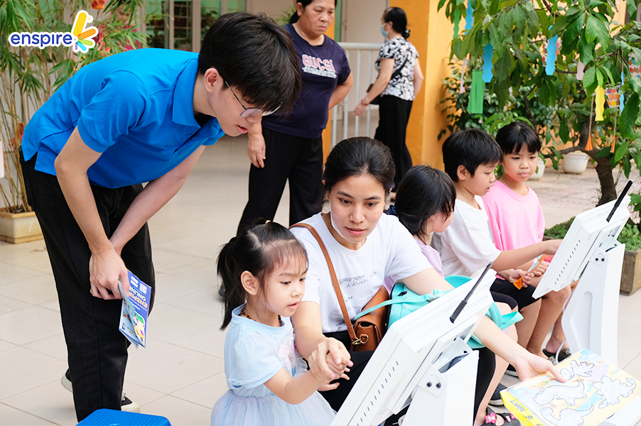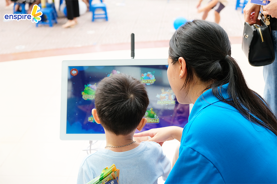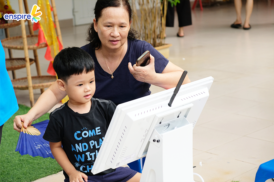 Bên cạnh sự tham gia đầy nhiệt huyết của các bạn nhỏ, thì các vị phụ huynh cũng tỏ ra hào hứng không kém và rất vui vẻ khi xem các bạn nhỏ trải nghiệm ứng dụng Enspire Online để thực hành tiếng Anh. Ngắm nhìn những ánh mắt hạnh phúc và nụ cười tự hào của các phụ huynh khi các con “chinh phục” được những “thử thách” của Enspire Online, Enspire cũng cảm thấy vui lây và thêm phần tự hào. Enspire mong rằng, với ứng dụng Enspire Online, cha mẹ có thể giúp con chủ động làm quen với thiết bị công nghệ số một cách văn minh, và hướng dẫn con “tận dụng” công nghệ, trở thành những công dân số tích cực.