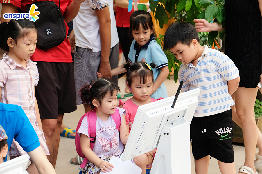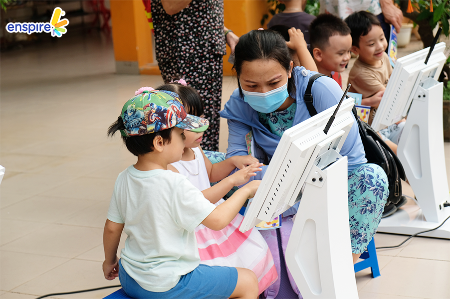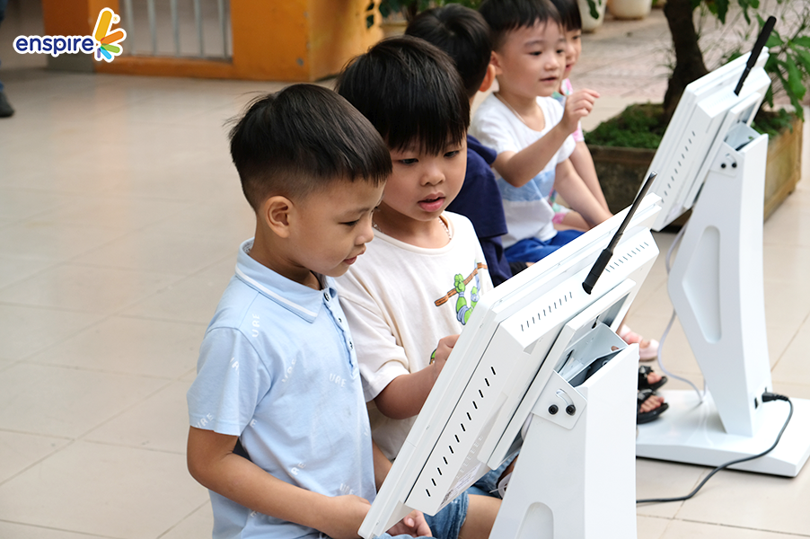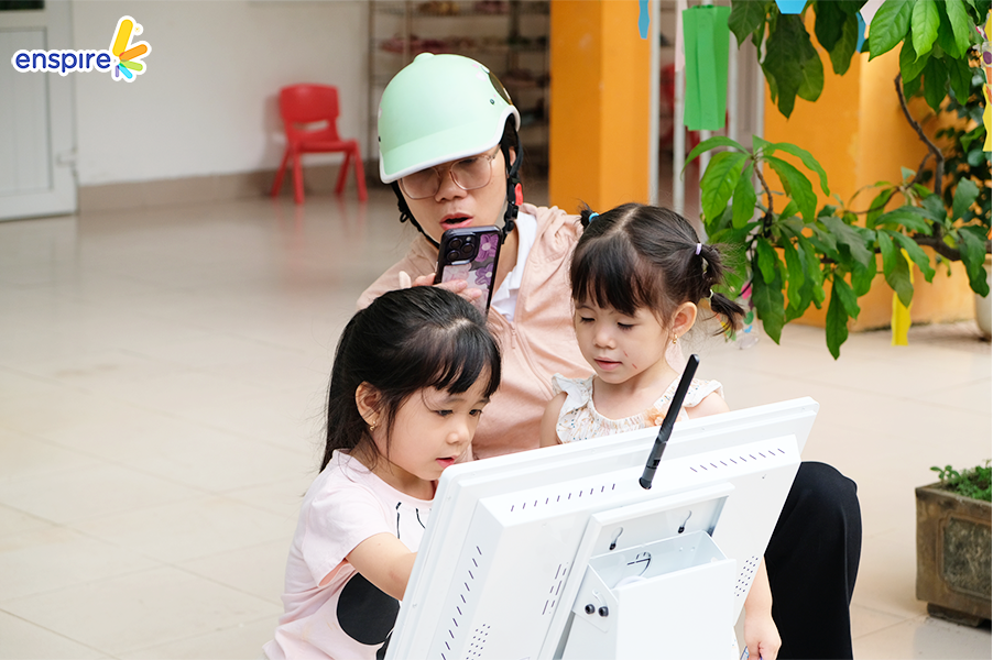 Tiếp nối chuỗi sự kiện “Để con trở thành công dân số hạnh phúc”, Enspire ghé thăm MN Kim Liên – Đống Đa. Các bạn nhỏ của mái trường Kim Liên đã chứng minh mình chính là những “công dân số nhí” tích cực và làm quen với việc trải nghiệm ứng dụng Enspire Online một cách nhanh chóng. Hãy cùng ngắm nhìn lại những khoảnh khắc tuyệt vời này nha!