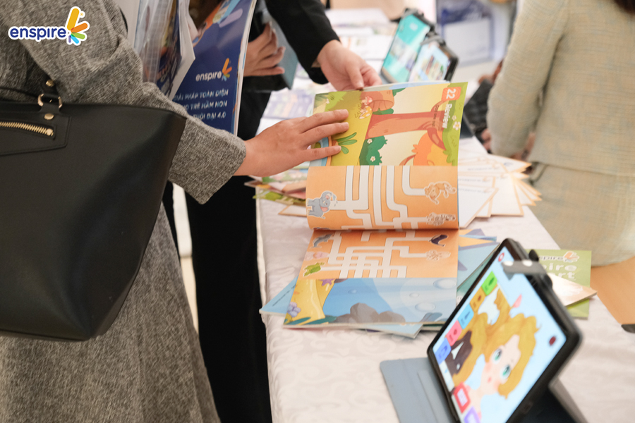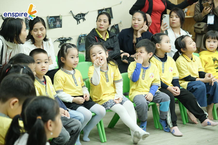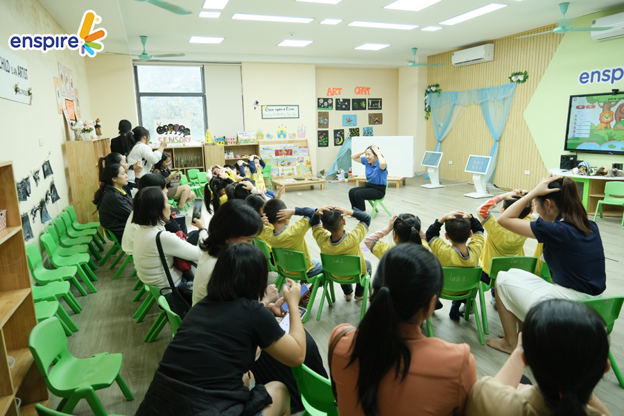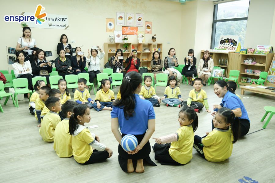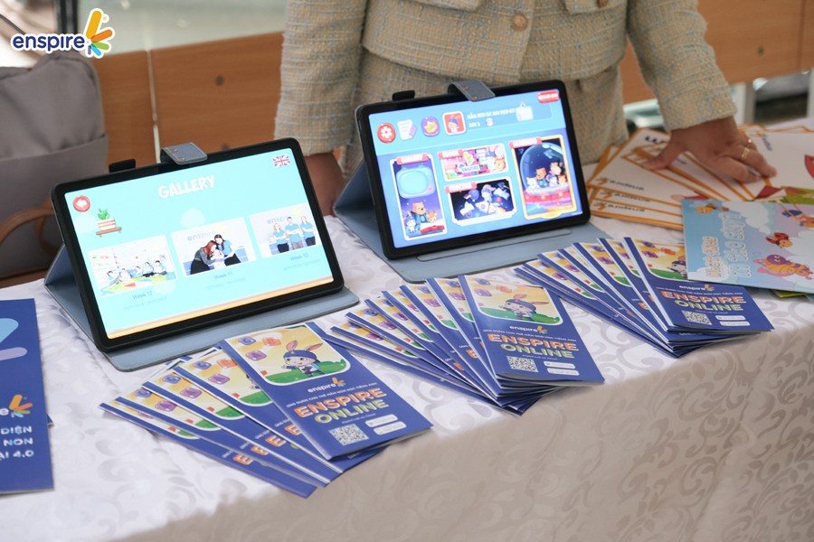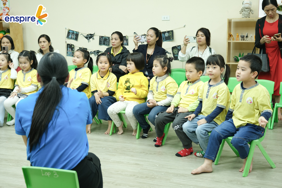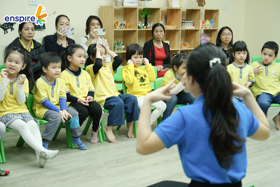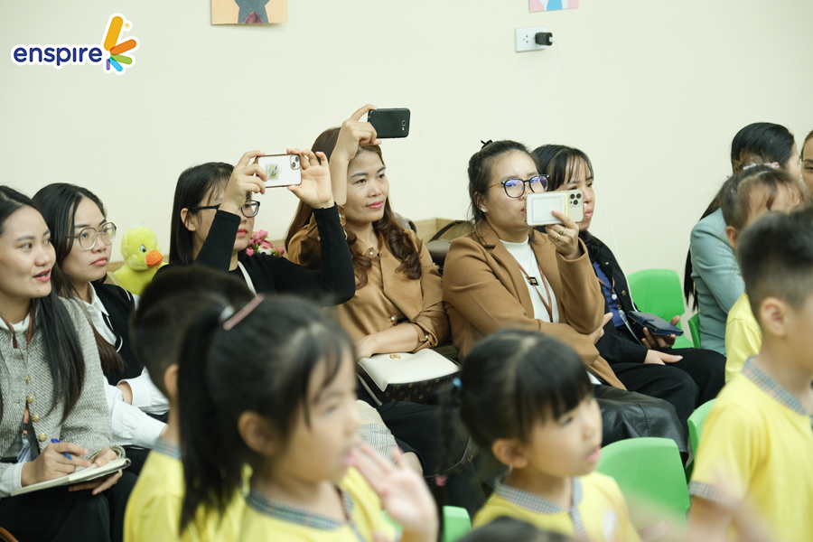 Trong đó, Trung tâm Ngoại ngữ Enspire phối hợp cùng Trường Mầm non thực hành Hoa Sen tham gia tổ chức 2 tiết học mẫu với chủ đề Ứng dụng Công nghệ trong giảng dạy tiếng Anh mầm non. Hai tiết học mẫu đã được đông đảo các đại biểu tham gia và nhận lại nhiều phản hồi tích cực. Các Đại biểu đánh giá cao về sự sáng tạo và phù hợp của việc ứng dụng công nghệ trong các tiết học làm quen tiếng Anh của trẻ mầm non.