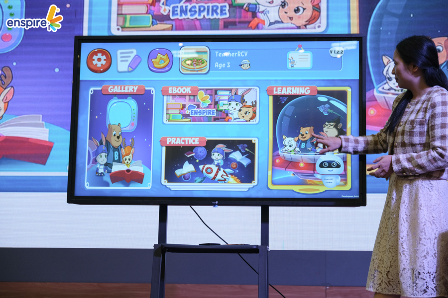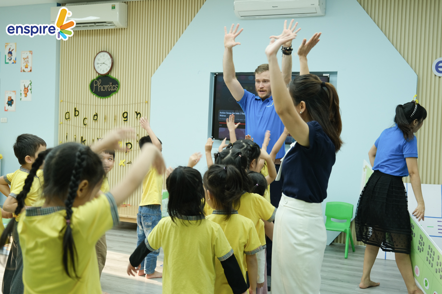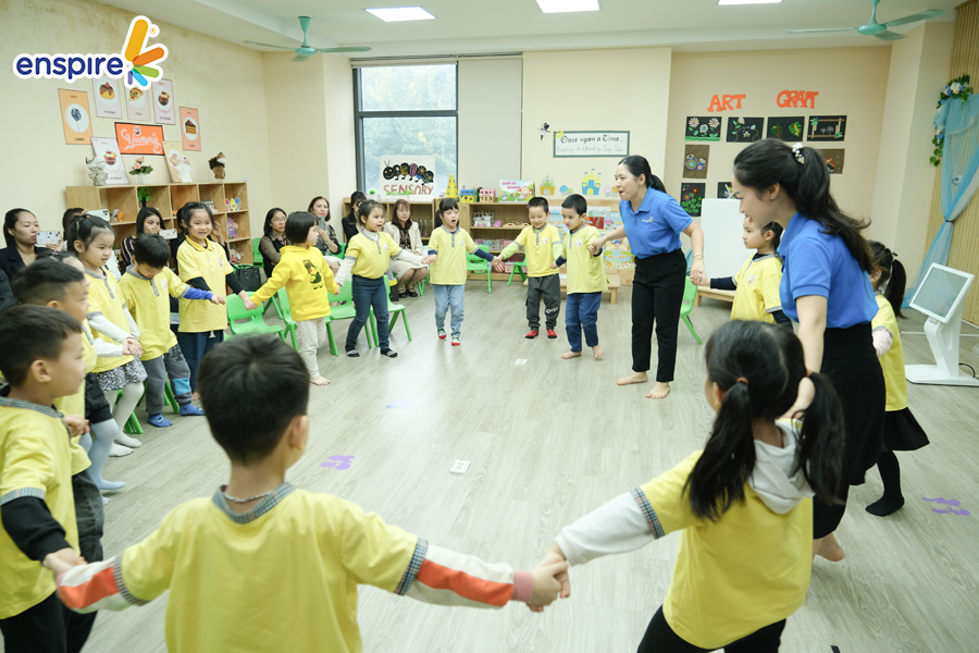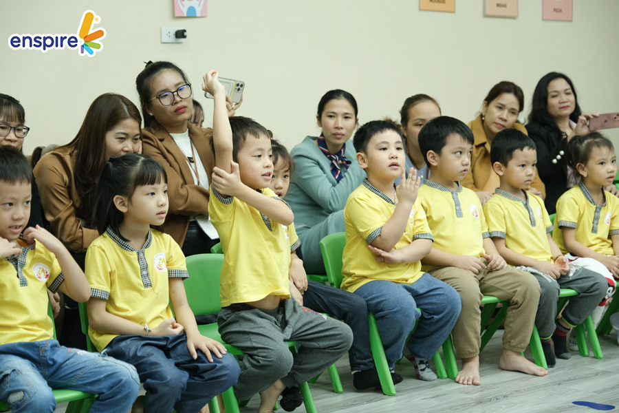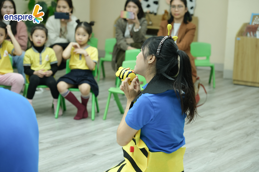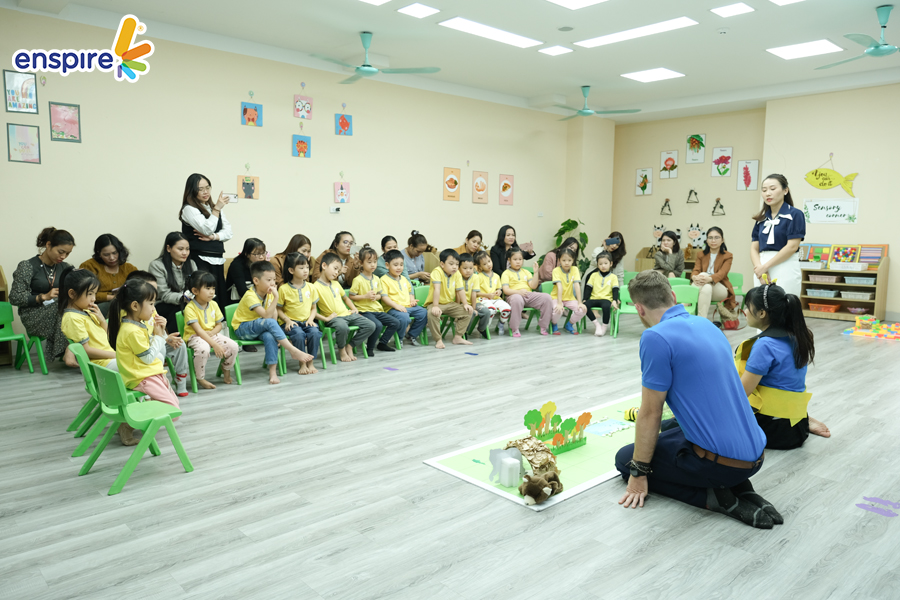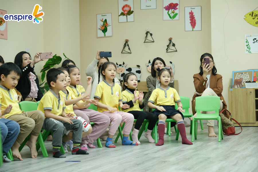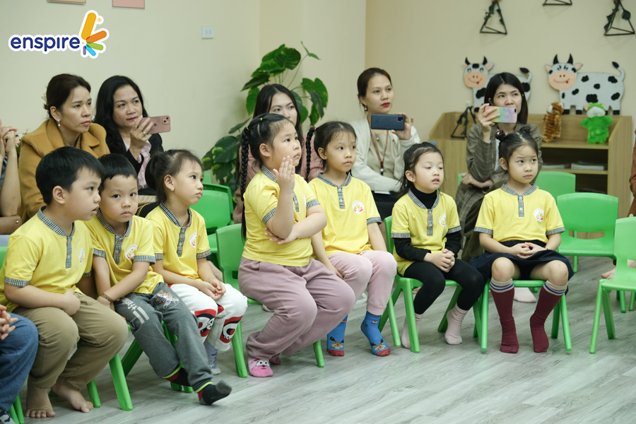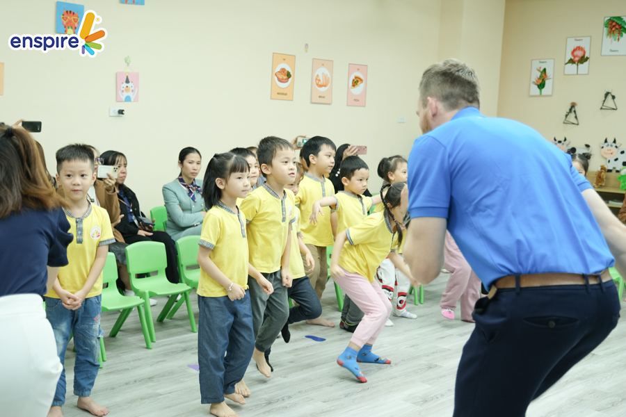 Trong đó, Trung tâm Ngoại ngữ Enspire phối hợp cùng Trường Mầm non thực hành Hoa Sen tham gia tổ chức 2 tiết học mẫu với chủ đề Ứng dụng Công nghệ trong giảng dạy tiếng Anh mầm non. Hai tiết học mẫu đã được đông đảo các đại biểu tham gia và nhận lại nhiều phản hồi tích cực. Các Đại biểu đánh giá cao về sự sáng tạo và phù hợp của việc ứng dụng công nghệ trong các tiết học làm quen tiếng Anh của trẻ mầm non.