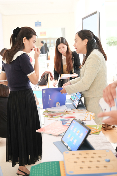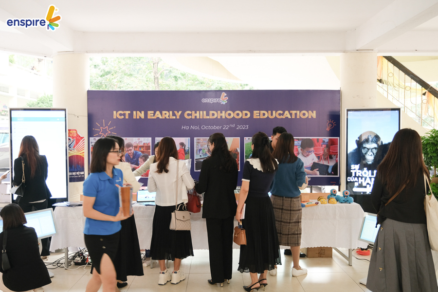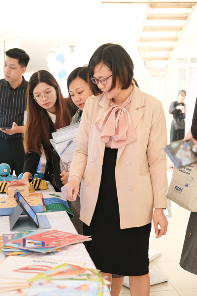 Các đại biểu cũng đã thăm quan các gian triển lãm của các đơn vị để tham khảo các mô hình ứng dụng công nghệ vào giáo dục cho trẻ mầm non.