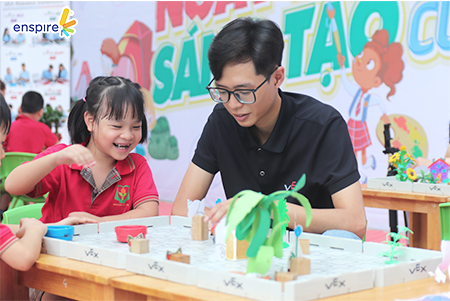 Tại Mầm non Thực hành Hoa Thủy Tiên, Enspire rất vui mừng được góp mặt với các góc chơi để các bạn nhỏ thỏa sức sáng tạo, say mê với Công nghệ: