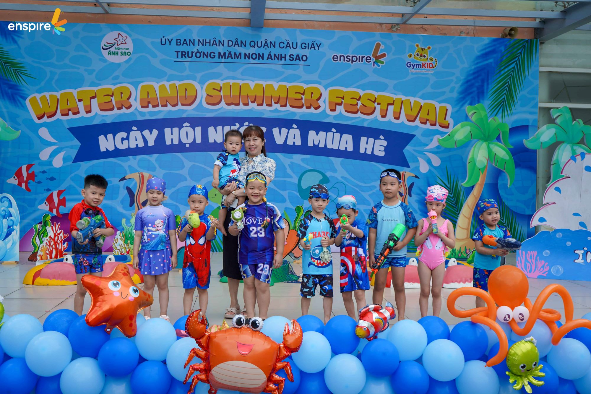Như vậy, sự kiện “Ngày hội nước và mùa hè” tại Trường MN Ánh Sao Cầu Giấy kết hợp cùng Enspire và Gymkid đã diễn ra thành công tốt đẹp. Nó đã để lại nhiều ấn tượng sâu sắc và niềm vui cho các bé học sinh mầm non. Enspire rất tự hào khi được đồng hành cùng các con và gia đình trong hành trình khám phá và học hỏi để trưởng thành tự tin vững chắc.