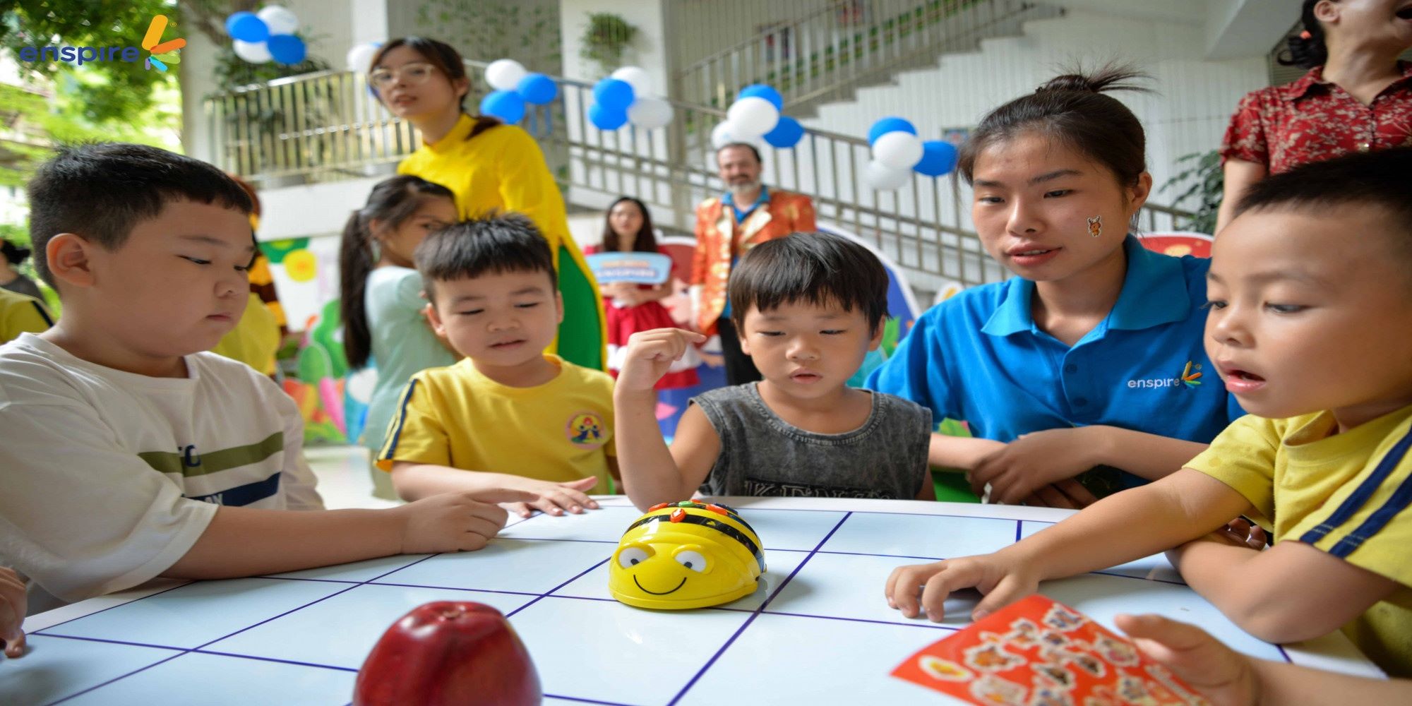 Góc Beebot là khu vực giúp bé làm quen học tập với công nghệ robots – một phương pháp đặc biệt được Enspire mang đến cho các em nhỏ. Với trải nghiệm học lập trình robot dưới sự hướng dẫn tận tình của các thầy cô để điều khiển người bạn robot Beebot. Bé sẽ có một trải nghiệm kỳ thú để nuôi dưỡng sự sáng tạo, niềm vui khi tiếp xúc công nghệ.